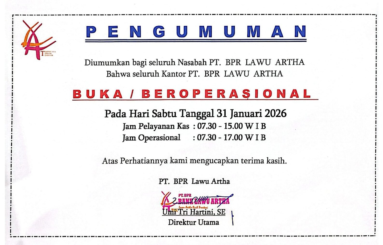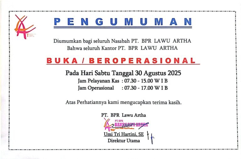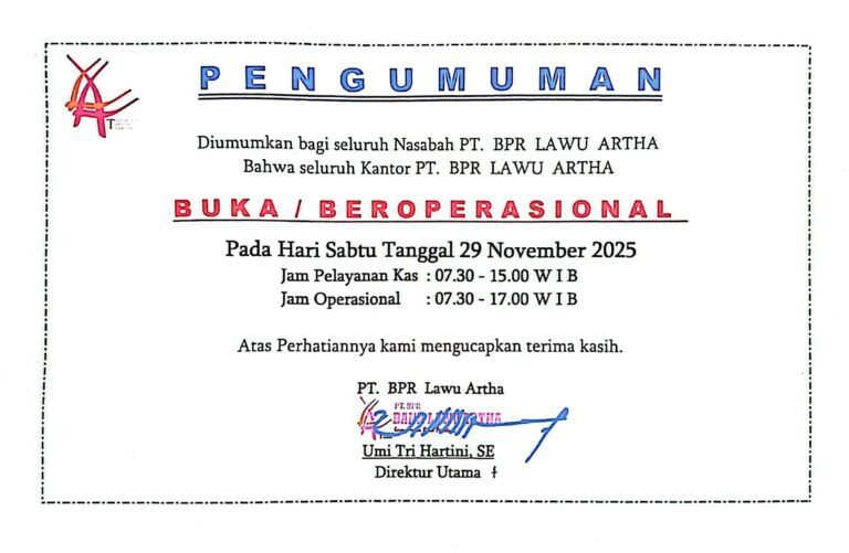 Diumumkan bagi seluruh Nasabah PT. BPR LAWU ARTHA