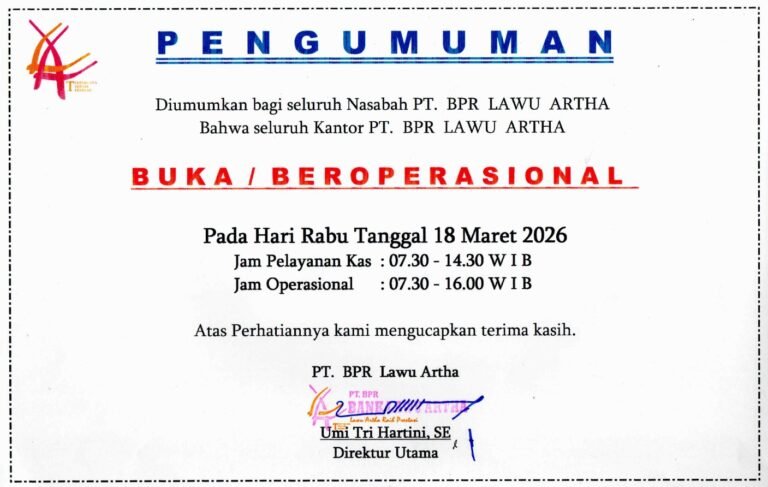 Diumumkan bagi seluruh Nasabah PT. BPR LAWU ARTHA
